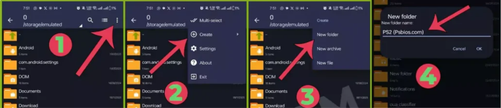 Step 5: Make a new folder called “PS2” in your device’s Internal Storage.